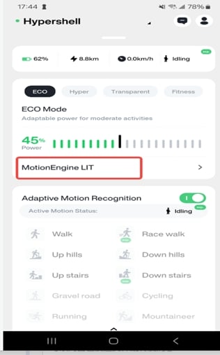 Puede personalizar fácilmente la configuración de movimiento de su dispositivo Hypershell a través de la aplicación Hypershell+ para lograr una experiencia más cómoda y receptiva.