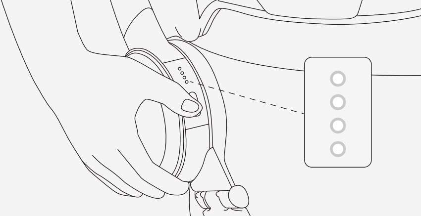 Il livello di potenza e la modalità attuali sono riflessi tramite indicatori LED (consulta il manuale utente per i dettagli sullo stato dei LED)