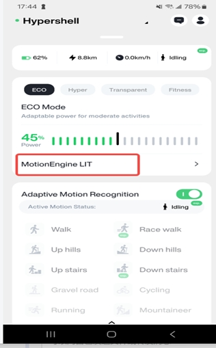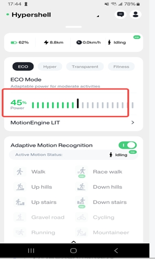 Puoi personalizzare facilmente le impostazioni di movimento del tuo dispositivo Hypershell tramite l'app Hypershell+ per ottenere un'esperienza più comoda e reattiva.