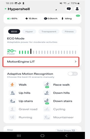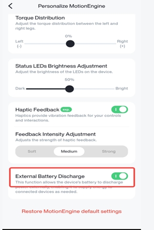 Vai alla sezione MotionEngine LIT Abilita la scarica esterna della batteria Attiva